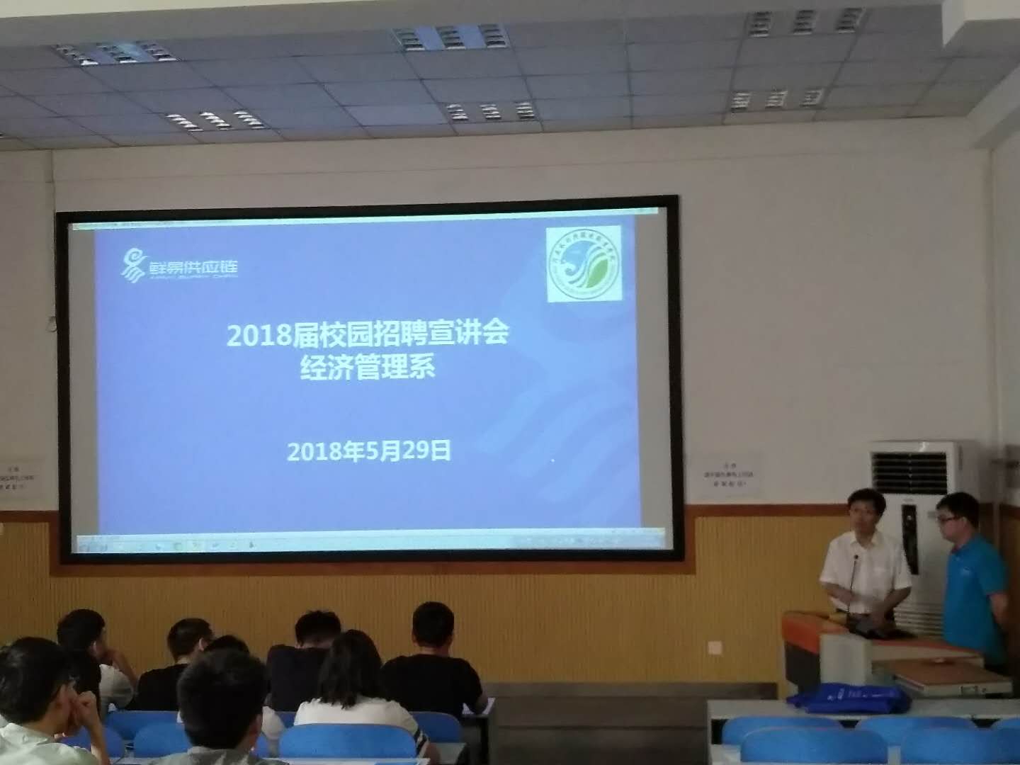 为切实做好我系顶岗实习工作,拓宽学生就业渠道,5月29日下午,经济管理系在北教二阶成功举办河南鲜易供应链有限公司专场招聘会,我系2016级物流管理专业全体学生到场参加。