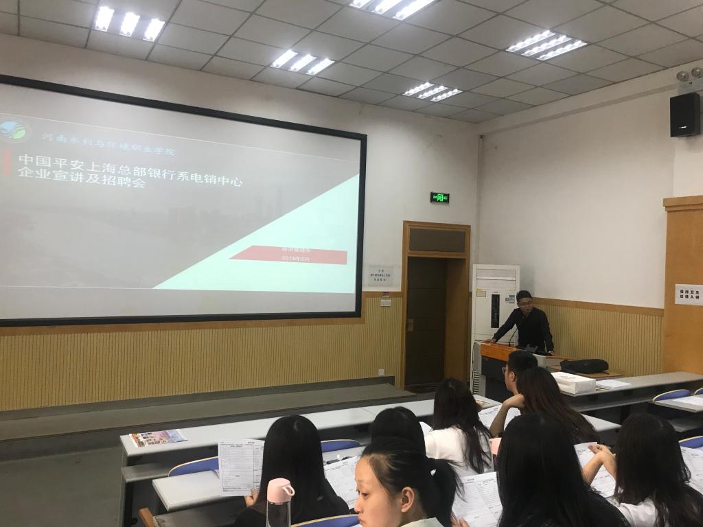 5月14日下午,中国平安上海总部银行系电销中心企业到经济管理系进行了企业宣讲及人才招聘,我系2017级会计类专业学生200余人参加了此次招聘。招聘会上,平安上海总部的高经理通过企业宣传视频,展示了该公司的企业文化建设、行业优势以及各岗位的招聘信息。同学们也结合自己的实际情况,向该公司提交了岗位面试单,展现出良好的就业意愿。