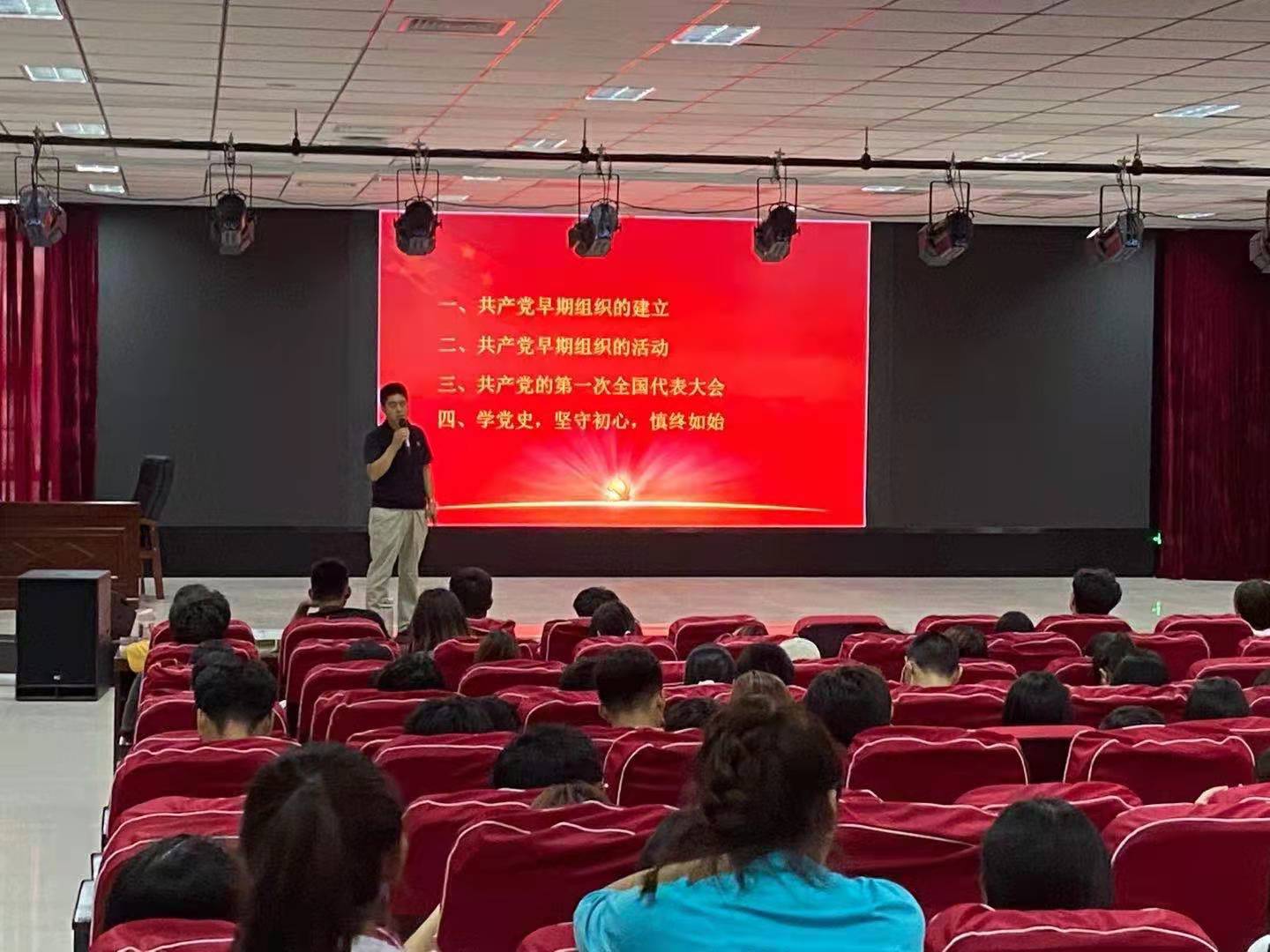 本次党课紧紧围绕习近平总书记在庆祝中国共产党成立100周年大会上的重要讲话精神,以“坚守初心、坚定践行”为学习主题,全面介绍了中国共产党早期组织的建立以及早期组织的活动等相关历史知识,让同学们明白了一百年来,我国取得的一切成就,是中国共产党人、中国人民、中华民族团结奋斗的结果,国以奋斗而强,党以奋斗而兴,作为新时代的大学生要坚守初心、坚定践行、以奋斗而立。