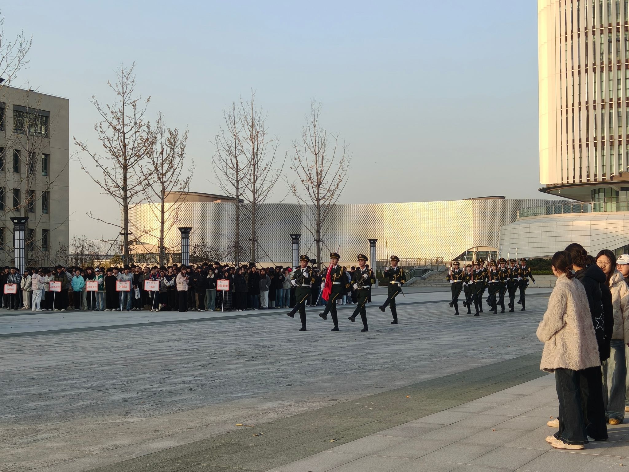 11 月 24 日,tyc7111cc太阳成集团在航空港校区东广场举行升旗仪式,全院师生共同参与。