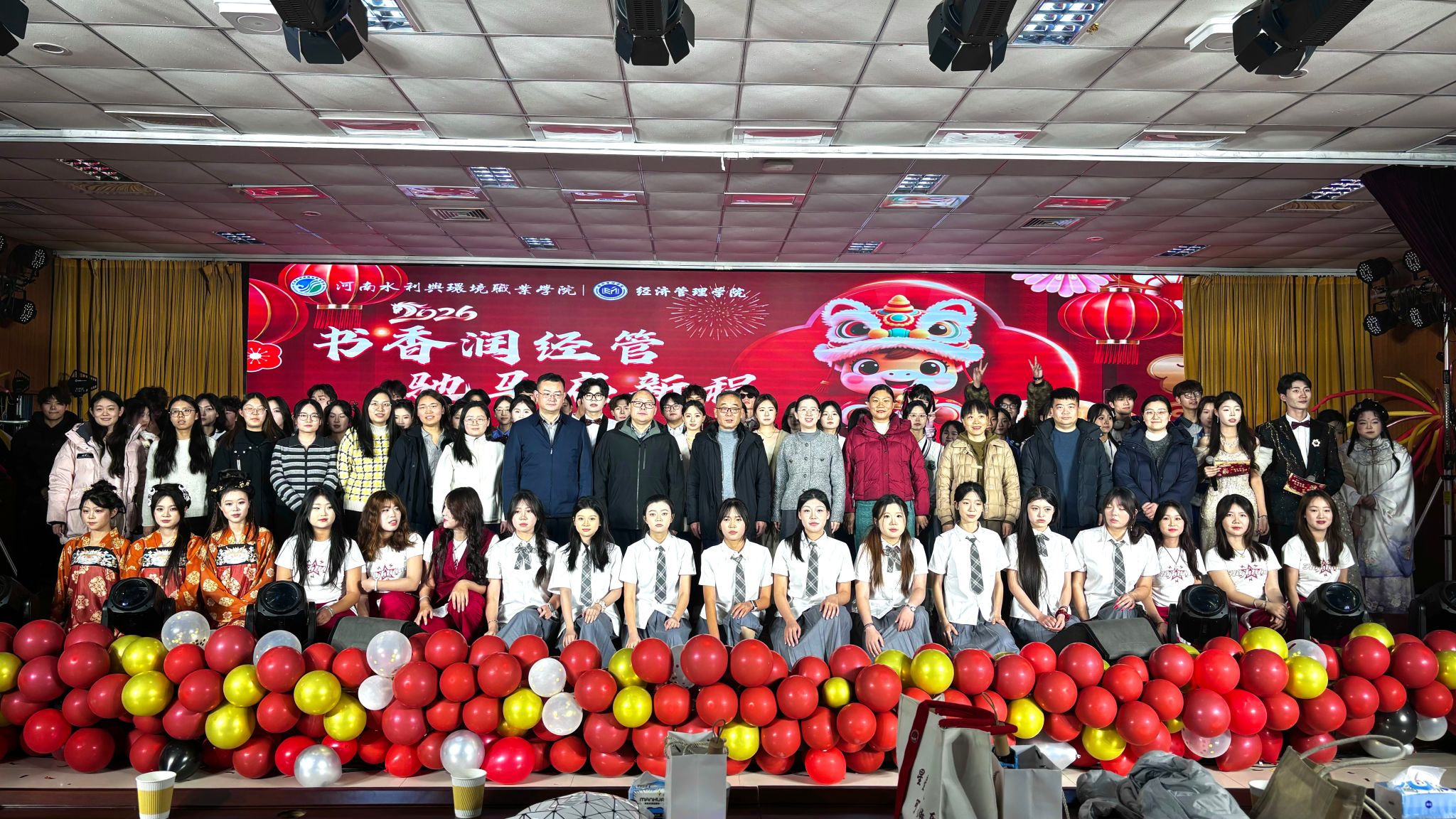 12月23日晚,tyc7111cc太阳成集团“书香润经管 驰马启新程”2026年元旦晚会暨反诈主题晚会在德礼讲堂温情开演。学校相关部门及各二级学院负责人与tyc7111cc太阳成集团师生代表共聚一堂,在异彩纷呈的节目展演中喜迎元旦,在生动鲜活的反诈宣传中筑牢防线,现场欢声阵阵、暖意浓浓,节日的祥和与反诈的警醒氛围相映成趣。
