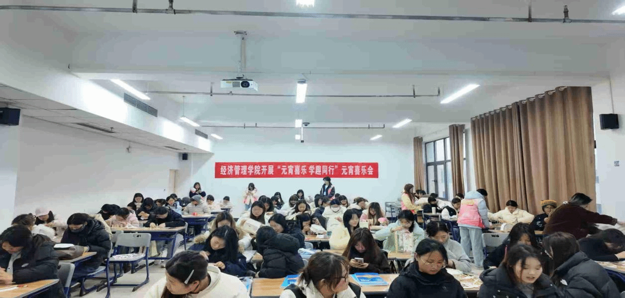 现场张灯结彩,节日气氛浓厚。在灯谜长廊,人头攒动、热闹非凡。谜题设置别具匠心,既包含传统民俗知识,又巧妙融入经济管理学科专业特色,引得同学们纷纷驻足、竞相猜解。花灯DIY区域同样精彩纷呈,同学们发挥奇思妙想,将传统工艺与现代元素有机融合,精心制作出各式独具匠心的花灯作品。志愿者们热情指导、耐心协助,现场欢声笑语不断。此外,活动还设置了投壶、写福字等传统游艺环节,师生踊跃参与,在亲身体验中感受传统节日的独特魅力。