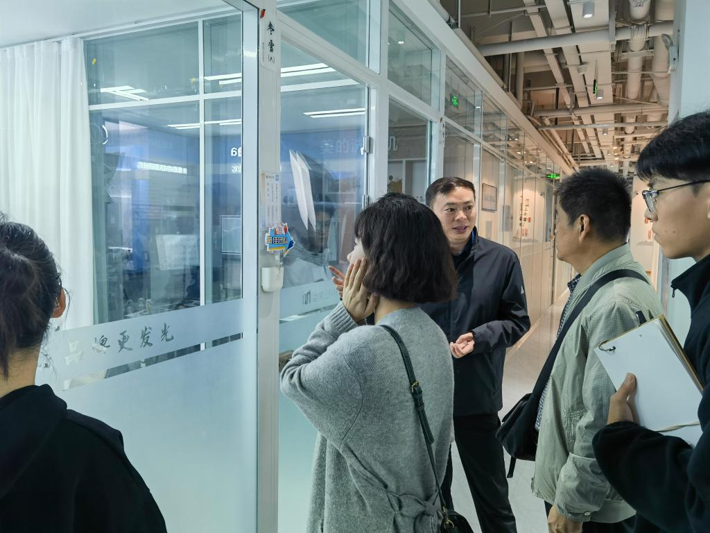 钟含一行首先参观了公司的办公场所、电商直播间、商品展厅,随后同公司总经理张俊涛举行了座谈。