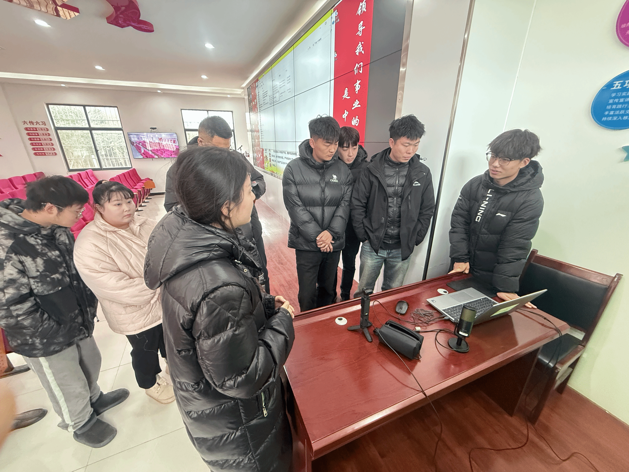 此次培训吸引了三十余名村民参加,旨在将实用的电商知识与技能送到田间地头,帮助村民掌握直播销售方法,拓展农产品销售渠道,以实际行动支持乡村振兴。培训伊始,张宝华详细介绍了学院的办学特色、学科优势以及服务地方经济发展的相关举措。接下来,来自24级跨境电子商务专业的崔崇倩围绕主播职业素养、直播行业规范等核心内容展开讲解,结合农产品直播案例,梳理了带货主播的必备能力与合规要点;耿晨阳则聚焦直播设备的实操使用,从设备调试、镜头运用到直播场景搭建,进行了手把手教学,将理论知识转化为通俗易懂的实操技巧。培训过程中,村民们热情高涨,纷纷围拢上前观摩学习,主动参与设备操作演练,现场学习氛围浓厚。