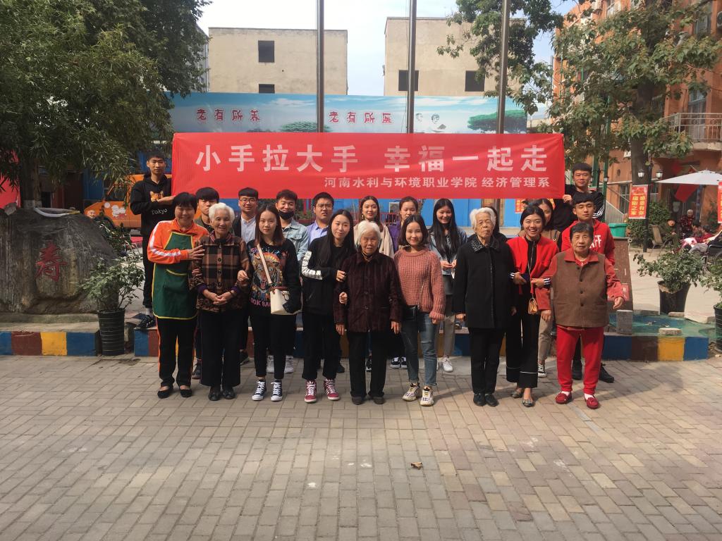 2018年10月14日,经济管理系组织学生干部带着水果、蛋糕、牛奶等用品到瑞阳老年活动中心开展了“小手拉大手”关爱老年人志愿活动。