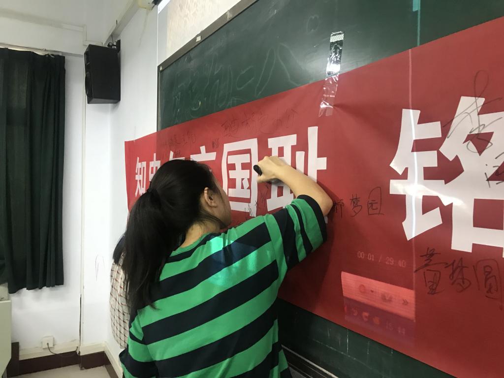 “九一八”事变87周年纪念日当天,经济管理系组织学生进行了教育活动,通过重温历史、诵读“铭记历史,勿忘国耻,振兴中华”倡议书、在条幅上签字以表爱国之心等形式激发了学生的民族自尊、自信、自强精神,使学生接受了一次生动的爱国主义教育。