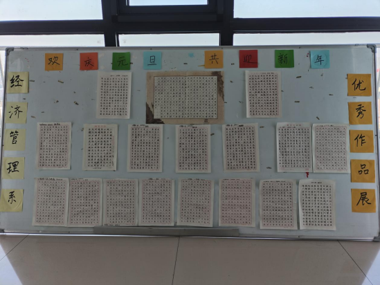 为弘扬中华优秀传统文化,营造浓厚的节日氛围,经济管理系举办“欢庆元旦,共迎新年”书法比赛。